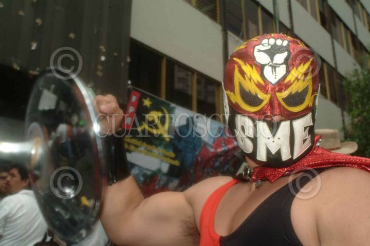 A las afueras del sindicato Mexicano de Electricistas se encontraba super SME apoyando a los integrantes del sindicato electricistas. FOTO: Nelly Salas/CUARTOSCURO.COM