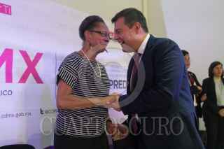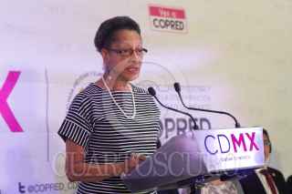 CIUDAD DE MÉXICO, 11OCTUBRE2018.- Almudena Ocejo Rojo, quien estará al frente de la Secretaría de Desarrollo Social de la Ciudad de México; Margarette May Macaulay, comisionada de la Comisión Interamericana de Derechos Humanos (CIDH) y Relatora sobre los Derechos de las Personas Afrodescendientes y contra la Discriminación Racial; José Ramón Amieva. Jefe de Gobierno, y Jaqueline L'Hoist Tapia, presidenta del Consejo para Prevenir y Eliminar la Discriminación de la Ciudad de México (COPRED), al finalizar la primera actividad que realizó la integrante de la CIDH en México, como parte de una gira de trabajo, el encuentro se realizó en la sede de la Copred. FOTO: MOISÉS PABLO /CUARTOSCURO.COM