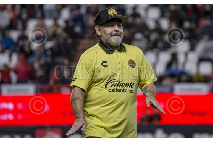 TIJUANA, BAJA CALIFORNIA, 12OCTUBRE2018.- Diego Armando Maradona, director técnico de Dorados de Sinaloa durante el encuentro que sostuvo ante Xoloitzcuintles de Tijuana, realizado en el Estado Caliente. La victoria favoreció al equipo visitante con marcador de un gol contra cero. FOTO: OMAR MARTÍNEZ /CUARTOSCURO.COM