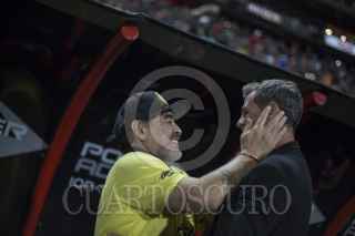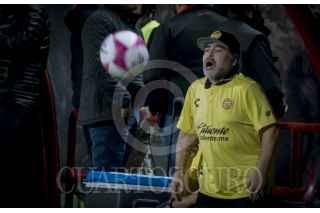 TIJUANA, BAJA CALIFORNIA, 12OCTUBRE2018.- Diego Armando Maradona, director técnico de Dorados de Sinaloa durante el encuentro que sostuvo ante Xoloitzcuintles de Tijuana, realizado en el Estado Caliente. La victoria favoreció al equipo visitante con marcador de un gol contra cero. FOTO: OMAR MARTÍNEZ /CUARTOSCURO.COM