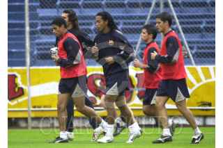 El delantero estrella del FC. Bardelona, Ronaldiniho De Assis Moreira, durante su entrenamiento en el Estadio Azul, para enfrentar a las Aguilas del América el próximo miercoles. FOTO: Sandra Perdomo/CUARTOSCURO.COM