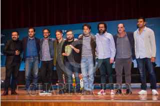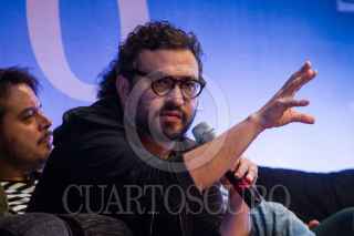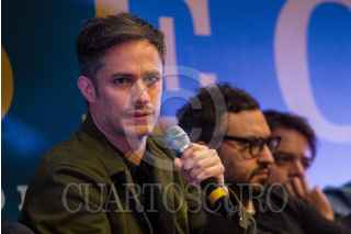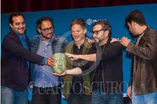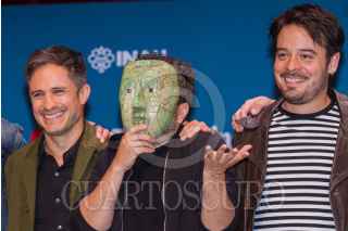 CIUDAD DE MÉXICO, 15OCTUBRE2018.- El guionista Manuel Alcalá, el productor Gerardo Gatica, el director Alonso Ruizpalacio, y los actores Gael Garcia Bernal y Leonardo Ortizgris, protagonistas de la película "Museo", durante la presentación del filme en el Museo Nacional de Antropología. FOTO: ISAAC ESQUIVEL /CUARTOSCURO.COM