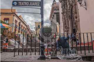 GUANAJUATO, GUANAJUATO, 15OCTUBRE2018.- Diversos trabajadores de la entidad realizan mantenimiento aplicando nueva pintura a diversas estructuras metálicas, mientras se realiza la celebración de la edición XLVI del Festival Internacional Cervantino. FOTO: MARIO JASSO /CUARTOSCURO.COM