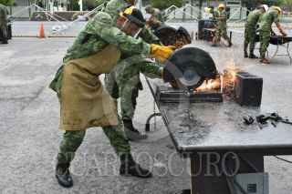 REYNOSA, TAMAULIPAS, 15OCTUBRE2018.- La Secretaría de la Defensa Nacional a través de la Comandancia de la IV Región Militar, informa que esta fecha se llevó a cabo en la explanada del 19/o. Regimiento de Caballería Motorizado de esta ciudad, la “Ceremonia masiva de destrucción de armamento”. El evento fue presidido por el C. General de División Diplomado de Estado Mayor Luis Crescencio Sandoval González, Comandante de la IV Región Militar, los acompaño el gobernador de la entidad Francisco García Cabeza de Vaca y la presidenta municipal de Reynosa, Maki Esther Ortiz. En la ceremonia se realizó la destrucción de 1,033 armas cortas y 2,198 armas largas, sumando un total de 3,231 aseguradas en los diversos mandos territoriales pertenecientes a la IV Región Militar. FOTO: SEDENA /CUARTOSCURO.COM