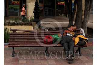 GUADALAJARA, JALISCO, 15OCTUBRE2018.- Un hombre en aparente situación de calle, duerme en una de las bancas aledañas al Instituto Cultural Cabañas. FOTO: ANDREA MURCIA /CUARTOSCURO.COM