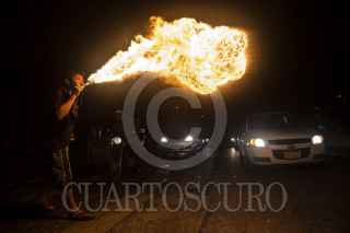 CAMPECHE, CAMPECHE, 15OCTUBRE2018.- Un lanzallamas realiza su espectáculo en los semáforos de la avenida Francisco I. Madero, con la finalidad de ganarse algunos pesos para llevar a su hogar. FOTO: MARTÍN ZETINA /CUARTOSCURO.COM