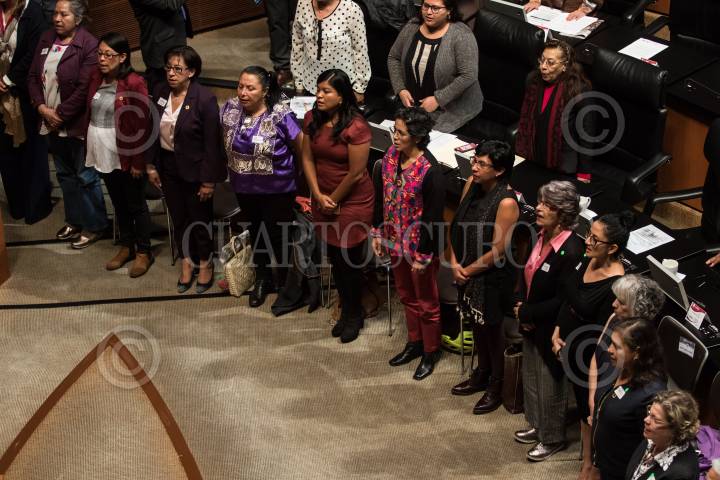 CIUDAD DE MÉXICO, 16OCTUBRE2018.- Miguel Ángel Osorio Chong, coordinador de los senadores del PRI y Gustavo Madero, senador del PAN, conversan durante la sesión solenme por los 65 años del derecho al voto de la mujer en México. FOTO: MISAEL VALTIERRA /CUARTOSCURO.COM