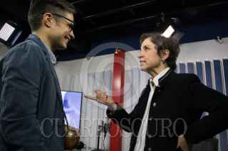 CIUDAD DE MÉXICO, 17OCTUBRE2018.- En punto de las 07:00 de la mañana, la periodista Carmen Aristegui inicio transmisiones en las frecuencias 97.7 de FM en la Ciudad de México, 107.5 FM en Guadalajara y 104.5 FM en Monterrey así como en la plataforma web de Aristegui Noticias. En la imagen el actor Gael García Bernal, asistió al estudio donde fue entrevistado por la comunicadora para dar detalles de su nueva película titulada "Museo". FOTO: SAÚL LÓPEZ /CUARTOSCURO.COM