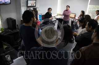 CIUDAD DE MÉXICO, 17OCTUBRE2018.- En punto de las 07:00 de la mañana, la periodista Carmen Aristegui inicio transmisiones en las frecuencias 97.7 de FM en la Ciudad de México, 107.5 FM en Guadalajara y 104.5 FM en Monterrey asi como en la platarforma web de Aristegui Noticias. En la imagen la comunicadora acompañado de su equipo de trabajo realizan su trabajo periodístico en su cabina-estudio ubicado al sur de la ciudad. FOTO: SAÚL LÓPEZ /CUARTOSCURO.COM