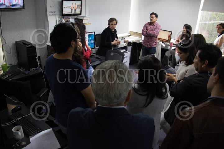 CIUDAD DE MÉXICO, 17OCTUBRE2018.- En punto de las 07:00 de la mañana, la periodista Carmen Aristegui inicio transmisiones en las frecuencias 97.7 de FM en la Ciudad de México, 107.5 FM en Guadalajara y 104.5 FM en Monterrey asi como en la platarforma web de Aristegui Noticias. En la imagen la comunicadora acompañado de su equipo de trabajo realizan su trabajo periodístico en su cabina-estudio ubicado al sur de la ciudad. FOTO: SAÚL LÓPEZ /CUARTOSCURO.COM