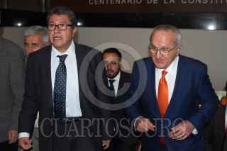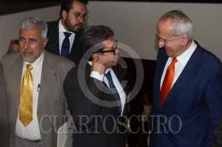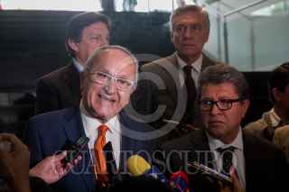 CIUDAD DE MÉXICO, 17OCTUBRE2018.- Jesús Seade; quien fue designado por el Presidente Electo, Andrés Manuel López Obrador, como negociador del nuevo tratado comercial con Estados Unidos y Canadá, y Napoleón Gómez Urrutia, conversan tras concluir la reunión que sostuvo Seade con los senadores de Morena, en la sede del Senado de la República. FOTO: MOISÉS PABLO /CUARTOSCURO.COM