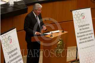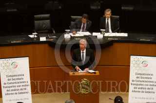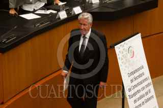 CIUDAD DE MÉXICO, 17OCTUBRE2018.- Gerardo Ruiz Esparza, secretario de Comunicaciones y Transportes, compareció ante senadores en el marco de la Glosa del VI informe de Gobierno, en donde calificó el socavón del Paso Express de Cuernavaca donde murieron dos personas como riesgos “inherentes a la construcción de obras de servicio de gran magnitud". FOTO: MOISÉS PABLO /CUARTOSCURO.COM