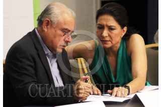 CUERNAVACA, MORELOS, 18OCTUBRE2018.- El vicealmirante José Antonio Ortiz Guarneros, Comisionado de Seguridad Pública del estado, y Ana Cecilia Rodríguez González la Secretaria de Economía y Trabajo, durante una reunión con el Consejo Coordinador Empresarial. FOTO: MARGARITO PÉREZ RETANA/ CUARTOSCURO.COM