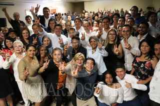 CUERNAVACA, MORELOS, 19OCTUBRE2018.- Marko Cortés, candidato a presidente nacional del Partido Acción Nacional, visito la capital para reunirse con la militancia, presentarle su proyecto y pedir su apoyo para la elección interna del 11 de noviembre. El panista pidió unidad a Adrián Rivera Pérez y Juan Carlos Martínez Terrazas quienes son los candidatos para la presidencia estatal del instituto político. FOTO: MARGARITO PÉREZ RETANA/ CUARTOSCURO.COM