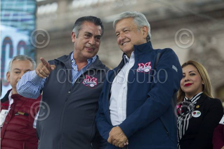 MONTERREY, NUEO LEÓN, 19OCTUBRE2018.- Andrés Manuel López Obrador, arribó a la Explanada de los Héroes recibido por el Gobernador de Nuevo León, Jaime Rodríguez “El Bronco” y realizar su presentación como parte de su gira de agradecimiento. FOTO: GABRIELA PÉREZ MONTIEL /CUARTOSCURO.COM