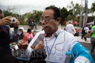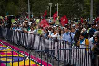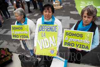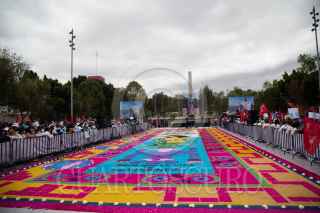 CIUDAD DE MÉXICO, 20OCTUBRE2018.- Se realizó la Concentración "Alza la voz por la Vida" en el Monumento a la Madre donde diversos ciudadanos del Frente Nacional por la Familia y grupos religiosos identificados con un pañuelo azul, exigieron a los legisladores se blinde la vida del feto y se continúe penalizando el aborto. Simultáneamente se presentó un tapete prehispánico monumental de aserrín con imágenes relativas al tema de la maternidad. FOTO: ILSE HUESCA /CUARTOSCURO.COM