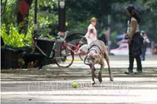 CIUDAD DE MÉXICO, 18OCTUBRE2018.- Un Braco de Weimar persigue una pelota en las calles de la colonia Condesa. FOTO: RODRIGO RUBIO /CUARTOSCURO.COM