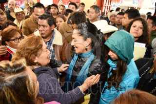 CIUDAD DE MÉXICO, 21OCTUBRE2018.- Claudia Shienbaum Pardo, Jefe de Gobierno electa, visitó a los habitantes de la colonia Magdalena Petlacalco de la alcadía Tlapan, como parte de su gira de agradecimiento tras ganar en los comicios del 1 de julio, ahí señaló que ella como futura administradora de la ciudad defenderá el actual aeropuerto y su viabilidad, esto ante la pregunta de como va votar en la consulta en donde se definirá si continua la construcción del Nuevo Aeropuerto de la Ciudad de México en Texcoco, o se elige otra opción como la de Santa Lucía. FOTO: PRENSA CS /CUARTOSCURO.COM