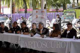 TOLUCA, ESTADO DE MÉXICO, 22OCTUBRE2018.- El alcalde de Toluca, Fernando Zamora, entregó 18 patrullas y 20 motopatrullas, ante las constantes exigencias de la población por mayor seguridad. FOTO: ARTEMIO GUERRA BAZ/ CUARTOSCURO.COM