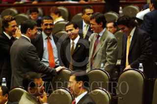 Los diputados Francisco Barrio, Roberto Campa y Jorge Kahwagi, durante la sesión en la Cámara de Diputados. FOTO: Nelly Salas/CUARTOSCURO.COM