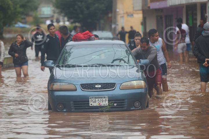 MORELIA, MICHOACÁN., 22OCTUBRE2018.- El agua en la colonia Jacarandas ha alcanzado al menos un metro de altura tras las inundaciones que trajo el huracán Willa a Morelia; vecinos de la colonia advierten que el nivel del agua no ha dejado de subir. FOTO: JUAN JOSÉ ESTRADA SERAFÍN /CUARTOSCURO.COM