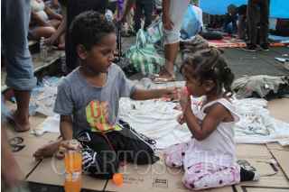 HUIXTLA, CHIAPAS, 22OCTUBRE2018.- La caravana de migrantes hondureños acampó esta tarde en la plaza principal de Huixtla, en donde dormirán para continuar mañana con su viaje hacia la frontera con Estados Unidos. FOTO: ISAAC ESQUIVEL /CUARTOSCURO.COM
