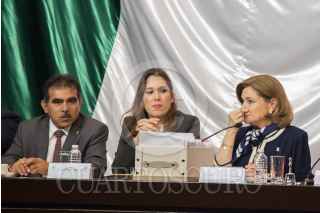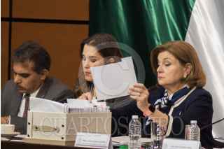 CIUDAD DE MÉXICO, 23OCTUBRE2018.- Arely Gómez González, secretaria de la Función Pública, compareció esta tarde ante las comisiones unidas de Vigilancia y de Transparencia de la Cámara de Diputados, por la Glosa del VI Informe de Gobierno. En la imagen, los diputados Marco Antonio Andrade Zavala, y Ximena Puente de la Mora, pertenecientes a la comisión de Vigilancia y Transparencia. FOTO: MARIO JASSO /CUARTOSCURO.COM