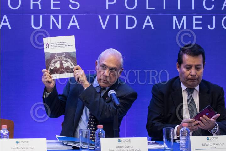 CIUDAD DE MÉXICO, 23OCTUBRE2018.- Ángel Gurría, secretario general de la Organización para la Cooperación y el Desarrollo Económicos (OCDE), en conferencia de prensa, presentó el Tercer informe de avances sobre el desarrollo del Nuevo Aeropuerto Internacional de México. FOTO: MISAEL VALTIERRA /CUARTOSCURO.COM