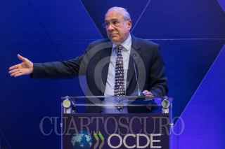 CIUDAD DE MÉXICO, 23OCTUBRE2018.- Ángel Gurría, secretario general de la Organización para la Cooperación y el Desarrollo Económicos (OCDE), en conferencia de prensa, presentó el Tercer informe de avances sobre el desarrollo del Nuevo Aeropuerto Internacional de México. FOTO: MISAEL VALTIERRA /CUARTOSCURO.COM