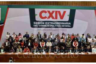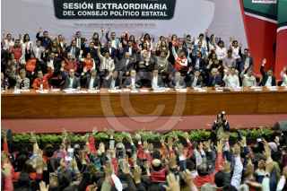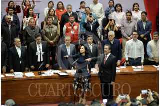 TOLUCA, ESTADO DE MÉXICO, 23OCTUBRE2018.- Alejandra del Moral e Ignacio Beltrán rindieron protesta como Presidenta y Secretario General del CDE del PRI, durante la CXIV Sesión Extraordinaria del Consejo Político Estatal del partido tricolor, para culminar el periodo estatutario 2015-2019, después de la renuncia de Ernesto Nemer. FOTO: ARTEMIO GUERRA BAZ /CUARTOSCURO.COM