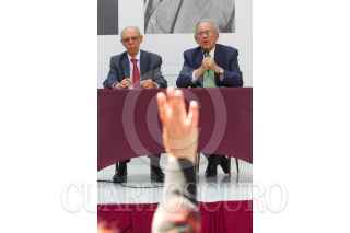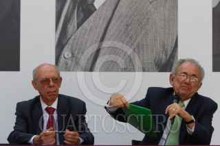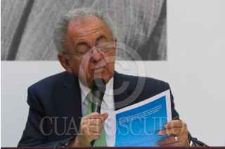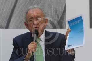 CIUDAD DE MÉXICO, 24OCTUBRE2018.- Javier Jiménez Espriú, futuro Secretario de Comunicaciones y Transportes, presentó el estudio "Airspace Design technical feasibility of simultaneous operations between Mexico City Internacional Airport (MMMX) an Santa Lucia military base (MMSM), el cual asegura que pueden operar de manera simultánea el Aeropuerto Internacional de la Ciudad de México "Benito Juárez" y la Base Aérea de Santa Lucía, en esta última el gobierno electo que encabeza, Andrés Manuel López Obrador, ha propuesto que se construya un nuevo aeropuerto para la ciudad, a pesar de que el actual gobierno inició con la construcción del Nuevo Aeropuerto Internacional de la Ciudad (NAIM) en Texcoco, ambos en el Estado de México, ante esta disyuntiva el Gobierno Electo a convocado a una consulta que se realizará del 25 al 28 en todo el país, para que la ciudadanía elija entre ambos proyectos. Jiménez Espriú señalo que el documento presentado no era para influenciar la opinión pública sobre su posible decisión, sino era para darles certeza de que ambos proyectos son viables, ante la pregunta de que por cual votaría él, dijo que no participará en el ejercicio para mantenerse imparcial. FOTO: MOISÉS PABLO /CUARTOSCURO.COM