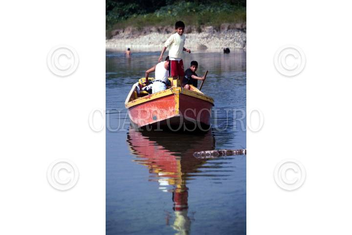 PANTEPEC, PUEBLA01ENE2004.-Luego de cruzar a las personas, el pequeño lanchero se da un chapuzón en el Pantepec. Los cauces de este alimentan los cultivos de cafe, maíz, frijol y diversos arboles frutales, tamarindo y naranja entre otros. FOTO: Juan Pablo Zamora/CUARTOSCURO.COM