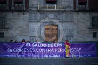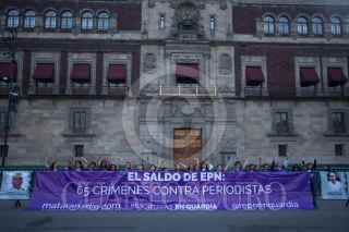 CIUDAD DE MÉXICO, 25OCTUBRE2018.- Mujeres periodistas de varios estados del país organizadas en el colectivo "Reporteras en Guardia", se manifestaron frente a Palacio Nacional para recordar y exigir justicia con un "Memorial Matar a Nadie" al gobierno saliente de Enrique Peña Nieto, que durante su sexenio fueron asesinados 66 periodistas. FOTO: ISABEL MATEOS /CUARTOSCURO.COM