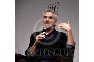 MORELIA, MICHOACÁN, 25OCTUBRE2018.- Ayer por la noche Alfonso Cuarón presentó su nueva pelícual Roma, en el Festival Internacional de Cine de Morelia, el dos veces ganador del Oscar sostuvo un encuentro con medios de comunicación en el legendario Teatro Ocampo, también ofreció un master class con jóvenes en donde relató que tras una borrachera en esta ciudad decidió rodar la cinta ganadora del León de Oro en Venecia. FOTO: CUARTOSCURO.COM