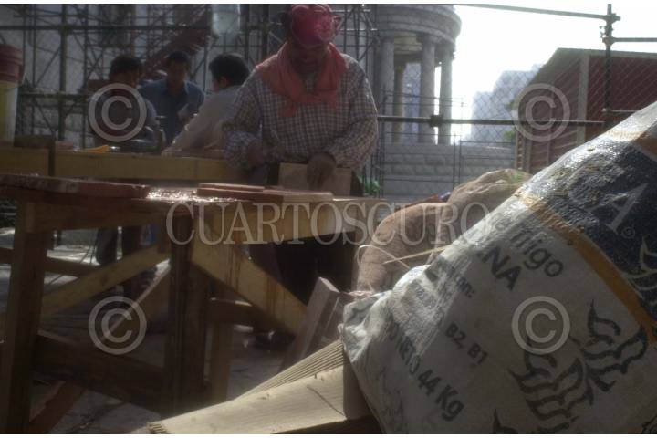 México, D.F. 02ENE2004.- Trabajadores encargados de cortar el marmol que se utiliza para la restauración del piso de la planta baja del Palacio de Bellas Artes. FOTO: Sandra Perdomo/CUARTOSCURO.COM