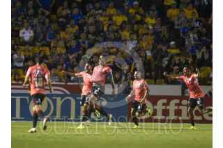 MONTERREY, NUEVO LEÓN, 27OCTUBRE2018.- Jugadores del equipo de Lobos Buap, celebran el gol, ante el equipo de los Tigres de la UANL, en el estadio Universitario, partido correspondiente a la jornada 14 de la Liga MX, Apertura 2018. Marcador Final: Tigres: 2 - Lobos: 2 FOTO: GABRIELA PÉREZ MONTIEL /CUARTOSCURO.COM