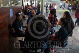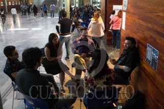CIUDAD DE MÉXICO, 28OCTUBRE2018.- Jóvenes que vivieron durante muchos años en los Estados Unidos y que realizaron la mayor parte de sus estudios profesionales en este país, hoy viven una realidad distinta ya que fueron deportados, a través del proyecto de la Secretaría de Cultura "Biblioteca Humana" hoy la gente puede escuchar sus historias de vida voz, en donde relatan sus experiencias en ambos países y lo complicado que ha sido para ellos muchas veces no sentirse aceptados tanto en México como en Estados Unidos. El encuentro se realizó en la Biblioteca Vasconcelos y las personas interesadas en el tema se acercaban primero a observar las reseñas de los libros, los cuales estaban colgados, de ahí se acercaban a los chavos que relataban sus historias, este proyecto es coordinado por Secretaría de Cultura y la organización Otros Dreams en Acción (ODA), fundadora de Poch@ House. FOTO: MOISÉS PABLO /CUARTOSCURO.COM
