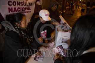 CIUDAD DE MÉXICO, 28OCTUBRE2018.- Tras cuatro días de votación, las casillas para que los ciudadanos emitieran su opinión acerca del Nuevo Aeropuerto Internacional de México (NAIM) fueron cerradas, en la mesa receptora de la Plaza de la Constitución surgieron problemas pasadas las 6 de la tarde porque una decena de personas se quedaron sin emitir su voto, se hicieron de palabras con las encargadas pero finalmente comenzaron el conteo a las 6:30 pm sin mayores incidentes. FOTO: ILSE HUESCA /CUARTOSCURO.COM