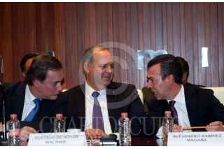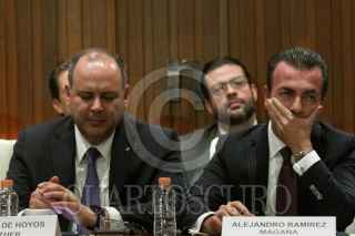 CIUDAD DE MÉXICO, 29OCTUBRE2018.- Juan Pablo Castañón, presidente del Consejo Coordinador Empresarial; Gustavo de Hoyos Walther, presidente de la Coparmex, y Alejandro Ramírez Magaña, presidente del Consejo Mexicano de Negocios, ofrecieron una conferencia de prensa luego para fijar su postura luego de que Andrés Manuel López Obrador, Presidente Electo, confirmará que tras la consulta realizada se cancela la construcción del Nuevo Aeropuerto Internacional de México y en su lugar se construirán dos pista en la Base Militar Aérea de Santa Lucía, la cual operará en conjunto con el actual aeropuerto y el Aeropuerto Internacional de Toluca. Acompañados de presidente de diferentes cámaras señalaron como grave error esta decisión por la desconfianza que se transmite a las inversiones nacionales y extranjeras. FOTO: MOISÉS PABLO /CUARTOSCURO.COM