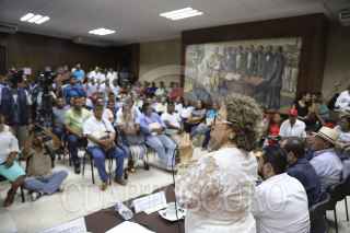 ACAPULCO, GUERRERO, 29OCTUBRE2018.- La Presidenta Municipal, Adela Román Ocampo, se reunió con los más de cien comisarios y delegados de Acapulco, de quienes recibió de forma directa peticiones, denuncias, observaciones, sugerencias y gestiones de cada una de sus colonias y comunidades, y ante quienes refrendó el compromiso de servir para sacar adelante el puerto y no me ando escondiendo yo sigo viviendo en mi casa no en la base naval como dicen, comento. En la sala Juan R. Escudero del Ayuntamiento Papagayo, los comisarios y delegados de Acapulco, tuvieron un diálogo abierto y franco con la Alcaldesa, en un primer encuentro formal que sirvió para establecer la dinámica de trabajo con respeto, sin distingos y bajo principios claros que vienen a cambiar la forma de servir al municipio. FOTO: BERNANDINO HERNÁNDEZ /CUARTOSCURO.COM