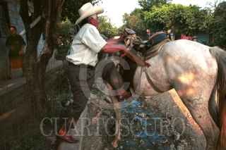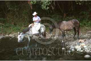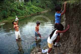 Pantepec, Puebla 04ENE2004.- Un jovén ranchero atravieza el arroyo de la comunidad de Ameluco, luego de su jornada laboral. FOTO:Juan Pablo Zamora/CUARTOSCURO.COM