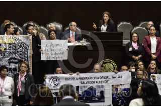 CIUDAD DE MÉXICO, 30OCTUBRE2018.- Diputados de la bancada de Morena, se manifestaron durante la comparecencia de Otto Granados Roldán, secretario de Educación Publica, en la sesión ordinaria de la Cámara de Diputados. FOTO: MARIO JASSO /CUARTOSCURO.COM