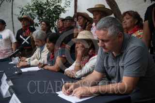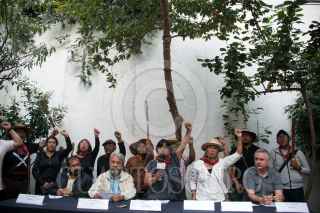 CIUDAD DE MÉXICO, 30OCTUBRE2018.- Trinidad Ramiírez, Frente de Pueblos en Defensa de la Tierra (FPDT) Abraham Noriega, Chimalhuacán, Juan José Reyes, Texcoco, Juan Pablo Murillo, Tepetlaxtoc, Alicia Galicia, Acuexcomac, Obdulio Ruiz, Tocuila e integrantes del FPDT, ofrecieron conferencia de prensa para dar pronunciamiento sobre las declaraciones de el día de ayer de Enrique Peña Nieto, presidente de la República, sobre el seguimiento de la construcción del Nuevo Aeropuerto de la Ciudad. FOTO: ANDREA MURCIA /CUARTOSCURO.COM