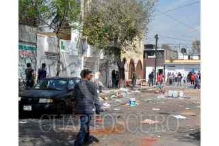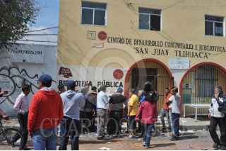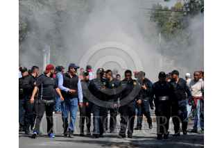 CIUDAD DE MÉXICO, 30OCTUBRE2018.- Pobladores de la colonia San Juan Tlihuaca en la alcaldía de Azcapotzalco, se enfrentaron a a pedradas y balazos con granaderos durante un intento de desalojo de un predio, ubicado en terrenos del Deportivo San Juan. Vecinos relataron que los elementos de la Secretaría de Seguridad Pública llegaron acompañados de personas ajenas al predio para intentar tomar el predio por la fuerza. El delegado Vidal Llerenas explicó que el predio está en disputa entre herederos de ejidatarios y presuntos invasores. Se reportaron dos jóvenes heridos de bala. FOTO: ARMANDO MONROY /CUARTOSCURO.COM