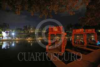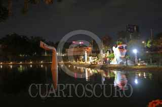 GUADALAJARA, JALISCO, 31OCTUBRE2018.- Recorrido para medios de comunicación por el primer parque temático de día de muertos en México, mismo que este jueves se inaugura y abre al público del 1 al 18 de Noviembre en las confluencias del Parque Ávila Camacho. FOTO: FERNANDO CARRANZA GARCIA /CUARTOSCURO.COM