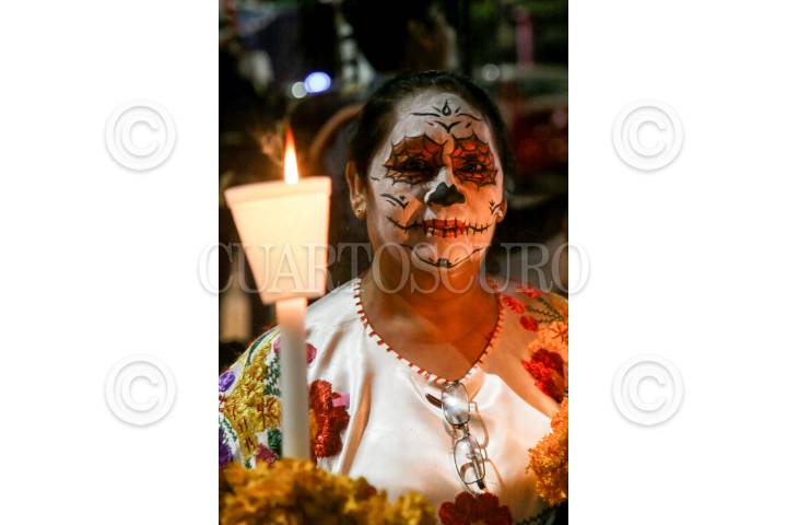 TLAPA, GUERRERO, 31OCTUBRE2018.- Habitantes de Tlapa durante el desfile de día de muertos que realizaron por las principales calles de la ciudad. FOTO: CARLOS ALBERTO CARBAJAL /CUARTOSCURO.COM
