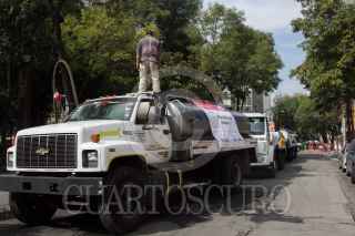 CIUDAD DE MÉXICO, 01NOVIEMBRE2018.- Los operadores de pipas continúan laborando en el segunda día del megacorte de agua en la capital. Según informan, en la alcaldía de Cuauhtémoc no ha habido mucha movilización pues los vecinos aún cuentan con reservas del vital líquido. Se espera que las complicaciones ocurran entre el sábado o domingo. FOTO: GALO CAÑAS /CUARTOSCURO.COM
