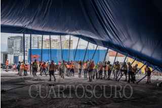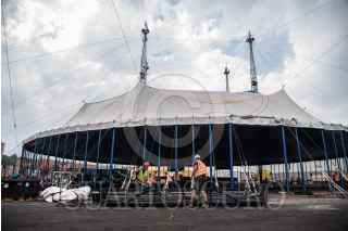 CIUDAD DE MÉXICO, 01NOVIEMBRE2018.- El equipo de staff de Cirque du Soleil, llevo a cabo el levantamiento de la carpa que albergará su más reciente producción "Luzia" que se presentará del 8 de noviembre al 23 de diciembre en el espacio de la Carpa Santa Fe. FOTO: MARIO JASSO /CUARTOSCURO.COM