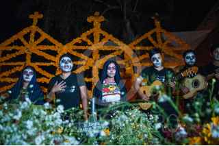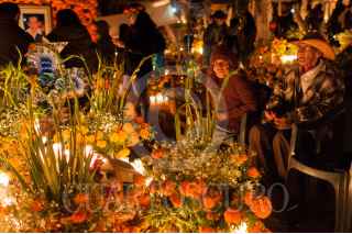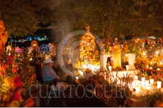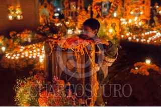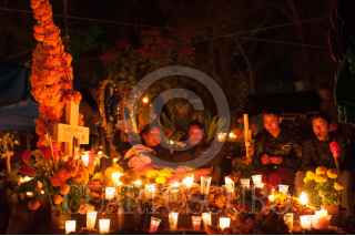 TZINTZUNTZAN, MICHOACÁN, 02NOVIEMBRE2018.- Cientos de personas acudieron al panteón municipal para visitar las tumbas de sus seres queridos adornadas con flores de cempasúchil, veladoras, copal, y alguna cosa que les recordara a sus familiares. Como ya es tradición, las familias pernoctaron toda la madrugada para acompañar ¨la llegada de los difuntos" durante un ambiente lleno de coloridos altares, música y el recuerdo de los que ya no están. FOTO: DIEGO SIMÓN SÁNCHEZ /CUARTOSCURO.COM
