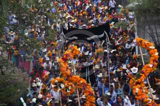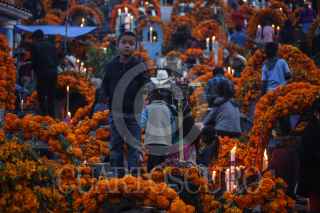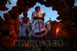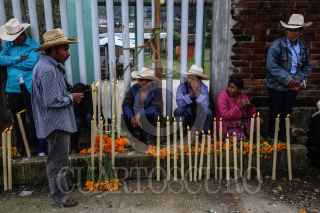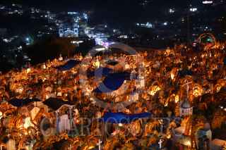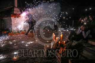 METLATONOC, GUERRERO, 02NOVIEMBRE2018.- Indígenas Na Savis (gente de la lluvia) del municipio de Metlatonoc ubicado en la región de la Montaña alta de Guerrero, durante la celebración del día de muertos en donde miles de habitantes realizan una procesión para ir a traer a sus seres queridos fallecidos hasta las ofrendas que realizan. La celebración que dura dos días que transcurren entre quema de castillos, toritos y veladas en el panteón de la comunidad. FOTO: CARLOS ALBERTO CARBAJAL /CUARTOSCURO.COM